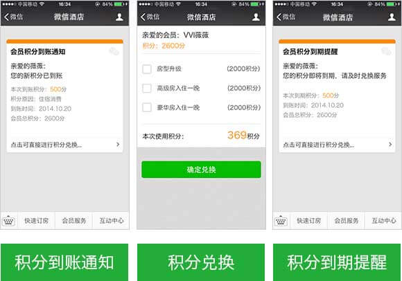 泛会员起点在住店(diàn)环节的结合点示例:任何环节使用(yòng)微信服務(wù)(即企业公众号)即成為(wèi)“泛会员”。